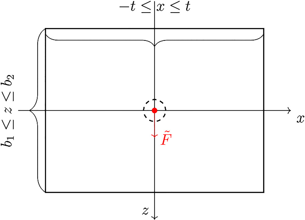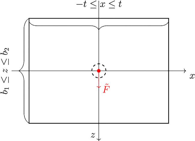 The net fluid flux across the boundaries of the rectangular region must balance with the applied fluid source $\tilde{F}$.