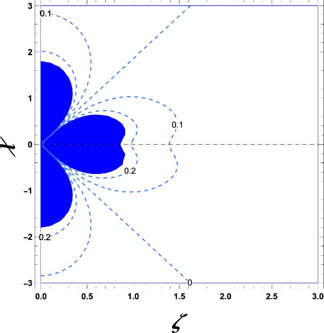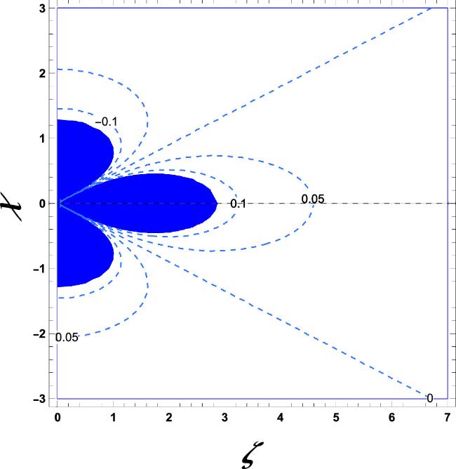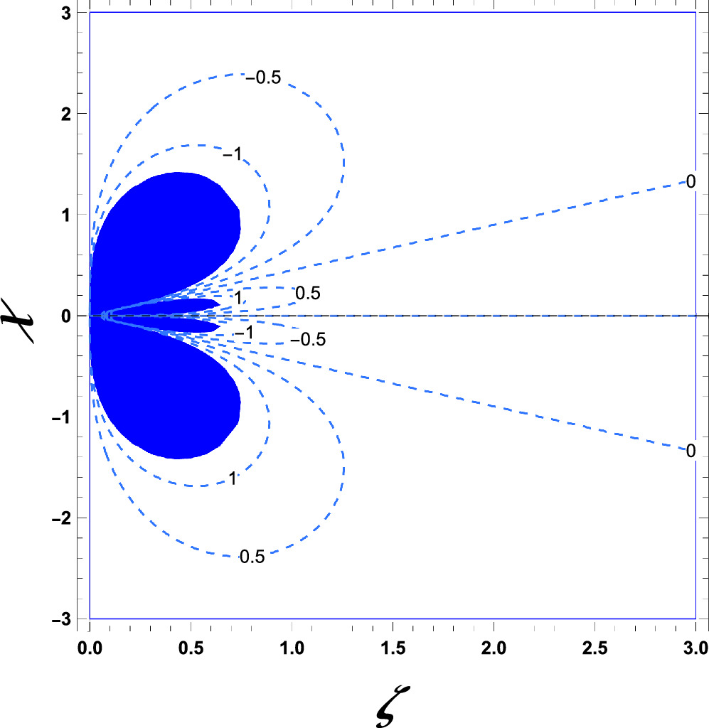 Higher-order singularities in shear stress are observed near the concentrated fluid source, with multiple zero common tangents along the ζ-axis, alternating between positive and negative values. This highlights regions of concentrated shear and emphasizes the fluid source’s pivotal role in stress distribution and material behavior.