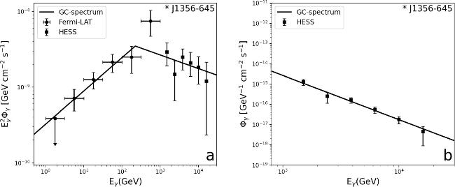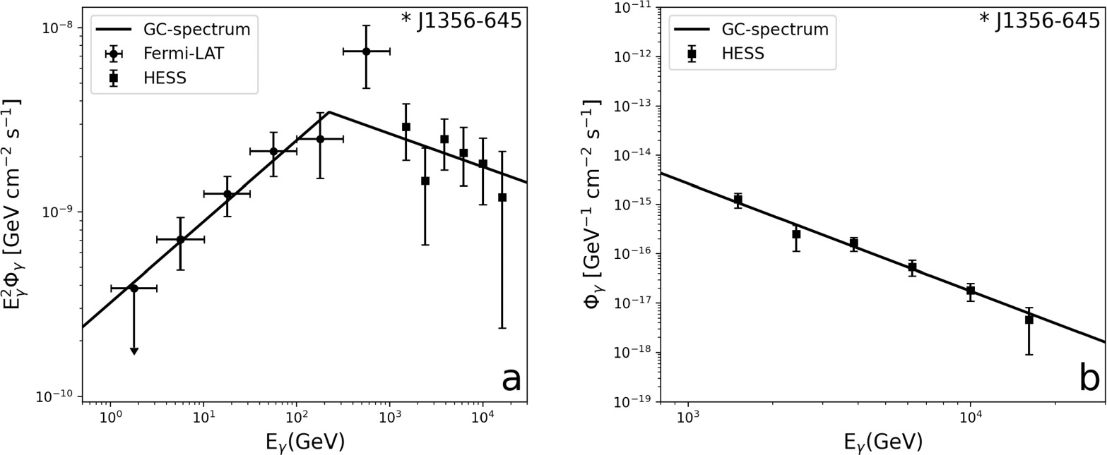 Since the pp collisions are a common phenomenon in the Universe, the pion condensation signals can occur in a variety of environments. J1356-645 is a known gamma-ray pulsar. Reference [28] reanalyzes the GeV gamma-ray emission in the direction of HESS J1356-645 with more than 13 years of Fermi Large Area Telescope (LAT) data. They find that the spectrum in the energy range in [1GeV, 1TeV] can be described by a PL. It can be explained by the condensation-spectrum (figure 7).