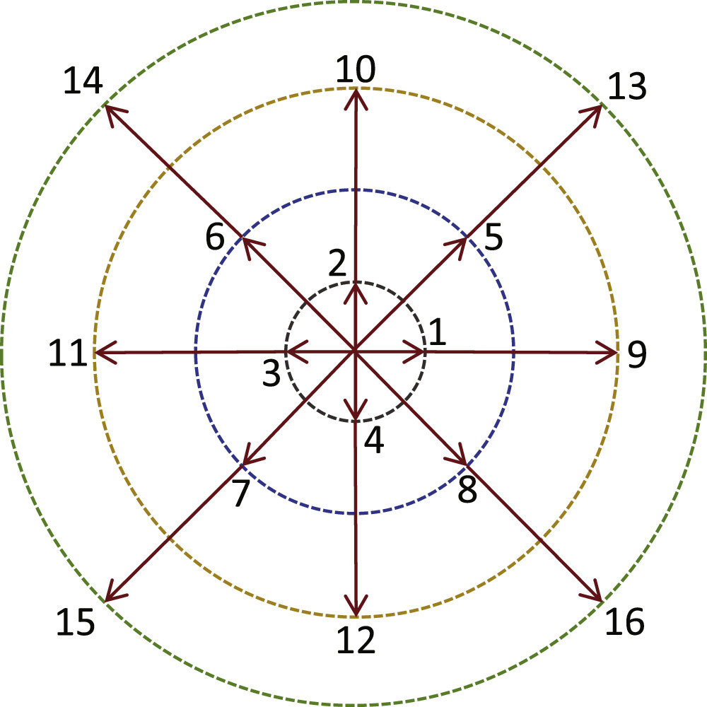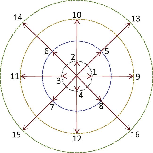 Figure 1. Diagram of the D2V16 discrete velocity model.