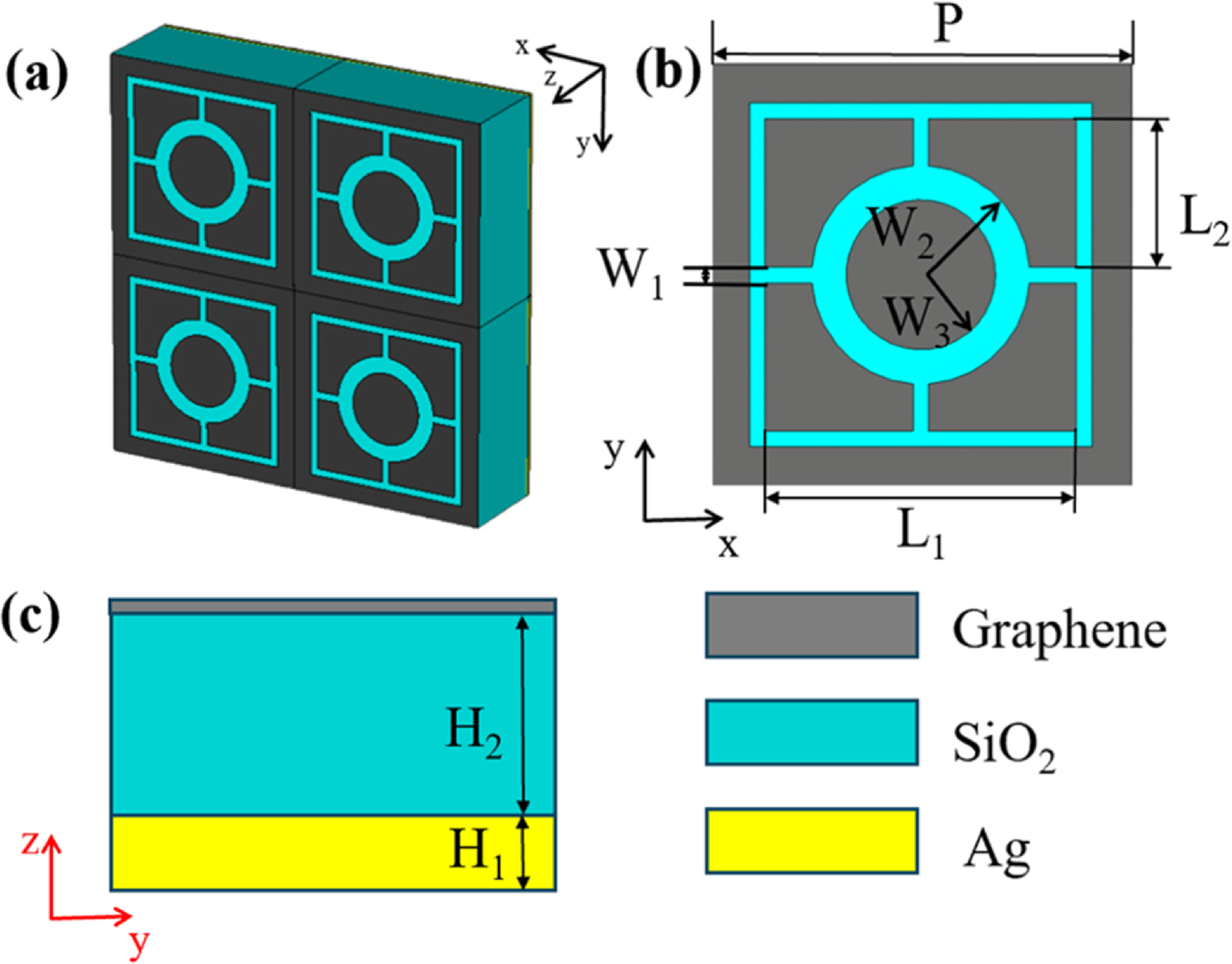26]. The top layer of the absorption unit structure consists of a single graphene layer, and its geometric parameters are shown in
