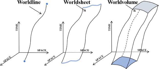 Just as a point particle moving in spacetime gives a worldline, a string moving in spacetime gives a (1 + 1)-dimensional worldsheet and a general p-brane moving in spacetime gives a (1 + p)-dimensional worldvolume, see figure 4 for an illustration.