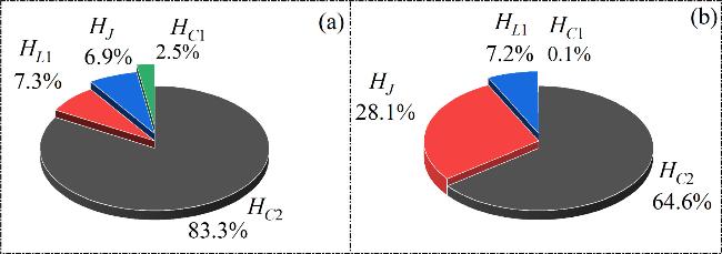 Figure 9. The energy percentage of the individual components under different Ic. (a) Ic = 6; (b) Ic = 11. Other parameters: α = 10, β = 9, m0 = −1, m1 = 0.9, $\omega $ = 0.01, A = 8.8, d = 1. The initial values: (0.1, 0.1, 0.1, 2). |