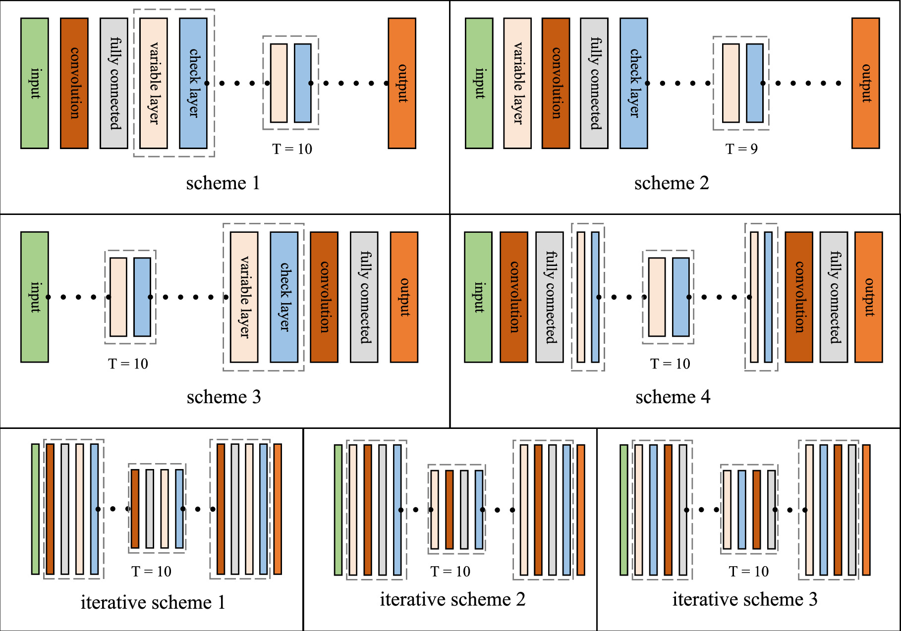 Figure 2. Convolutional optimization schemes. The symbol ‘⋯' represents a repeating structure and ‘T' is the number of repetitions. |