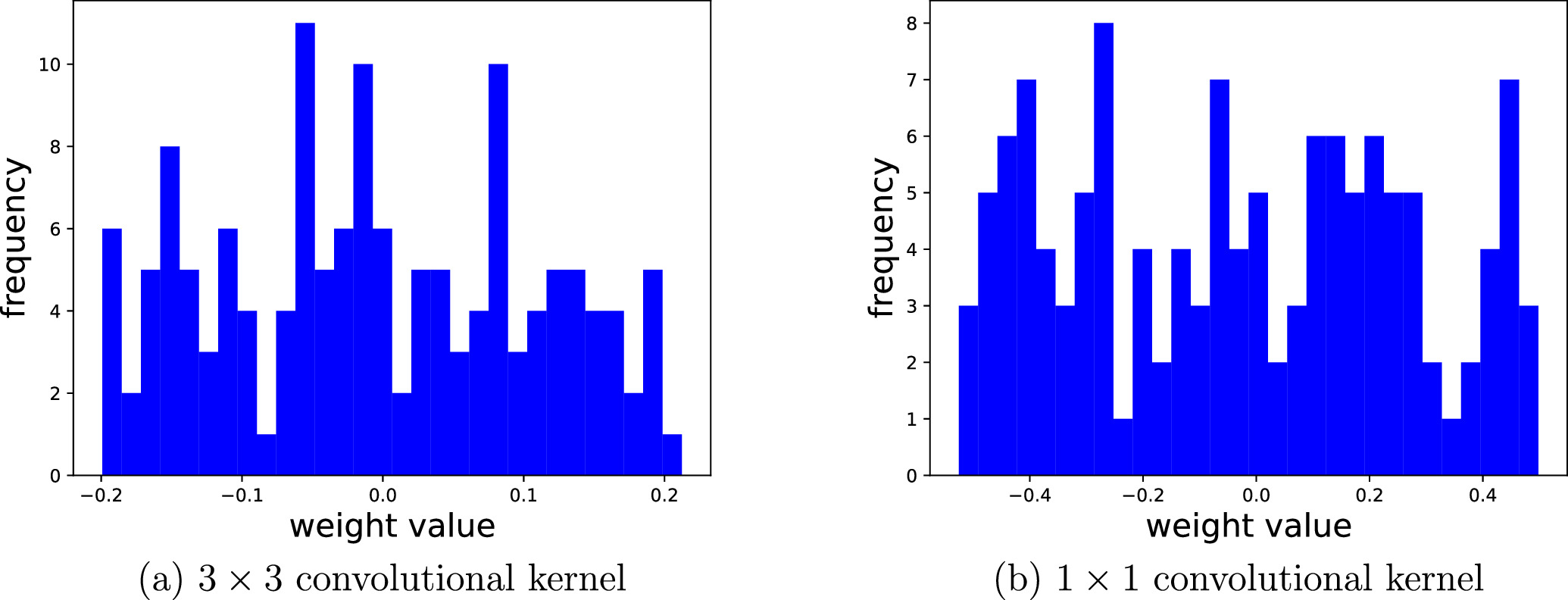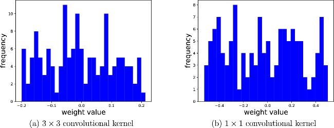 Figure 5. Histogram of the weight distribution of convolutional kernels. All the data results are obtained with a physical error rate of ε = 0.1. |