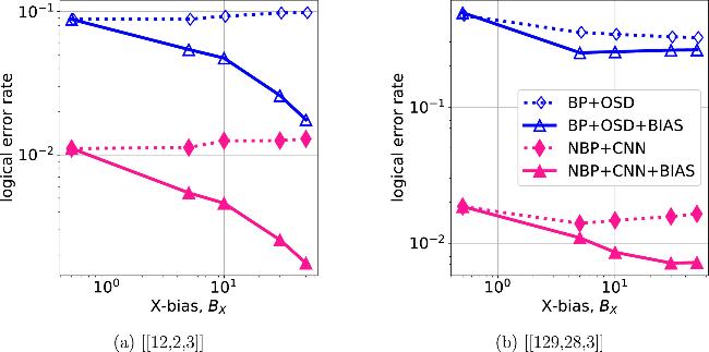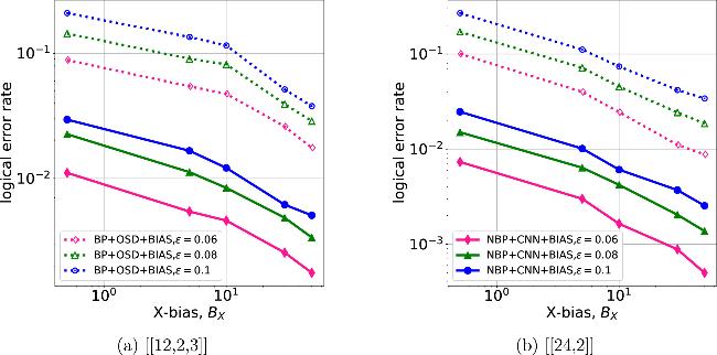 Numerical results show that for bias-tailored quantum codes, NBP + CNN + BIAS performs better than BP + OSD. Our proposed NBP + CNN + BIAS decoder achieves an order of magnitude improvement in their error suppression relative to higher-order BP + OSD.