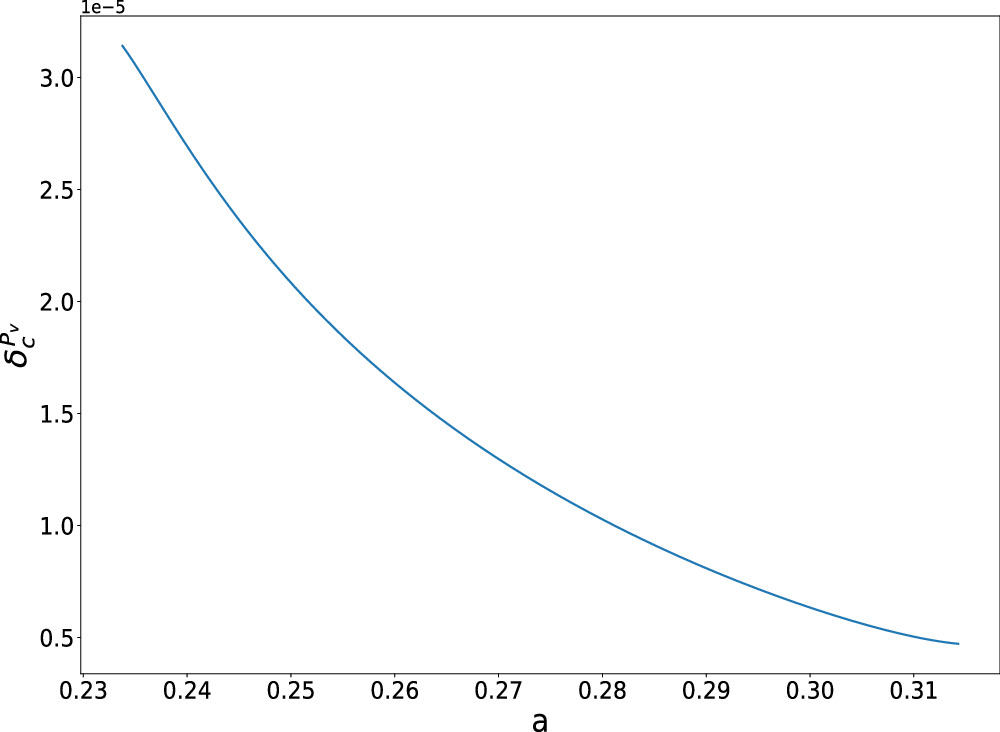 Figure 6. Dependence of the critical value ${\delta }_{c}^{Pv}$ about the angular momentum parameter a.