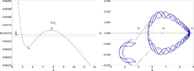 To perform the perturbation analysis we expand $P(v,\widehat{T})$ around the inflection point $P({v}_{0},{\widehat{T}}_{0})$ in a Taylor series, and to truncate at cubic terms. Therefore we can obtain
