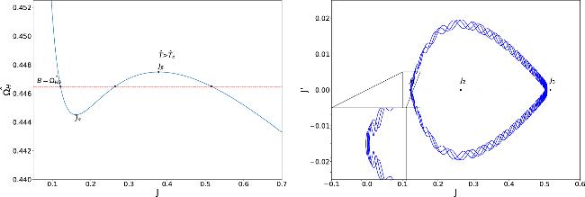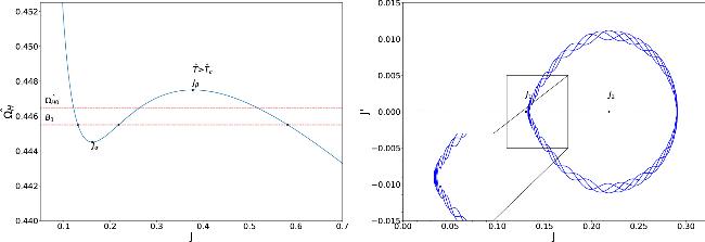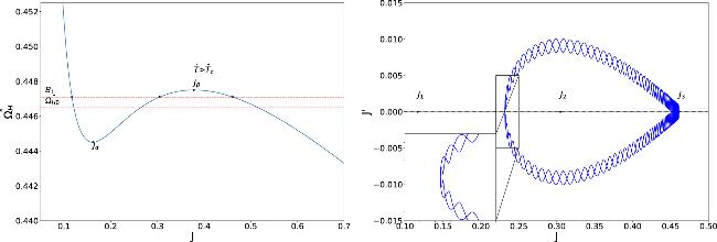 Figure 17. Portrait of the spatial perturbation dynamical system (70) in $J-{J}^{{\prime} }$ phase plane for ${\widehat{{\rm{\Omega }}}}_{H}({J}_{\alpha },{\widehat{T}}_{0})\lt {B}_{1}\lt {\widehat{{\rm{\Omega }}}}_{H}({J}_{0},{\widehat{T}}_{0})$.