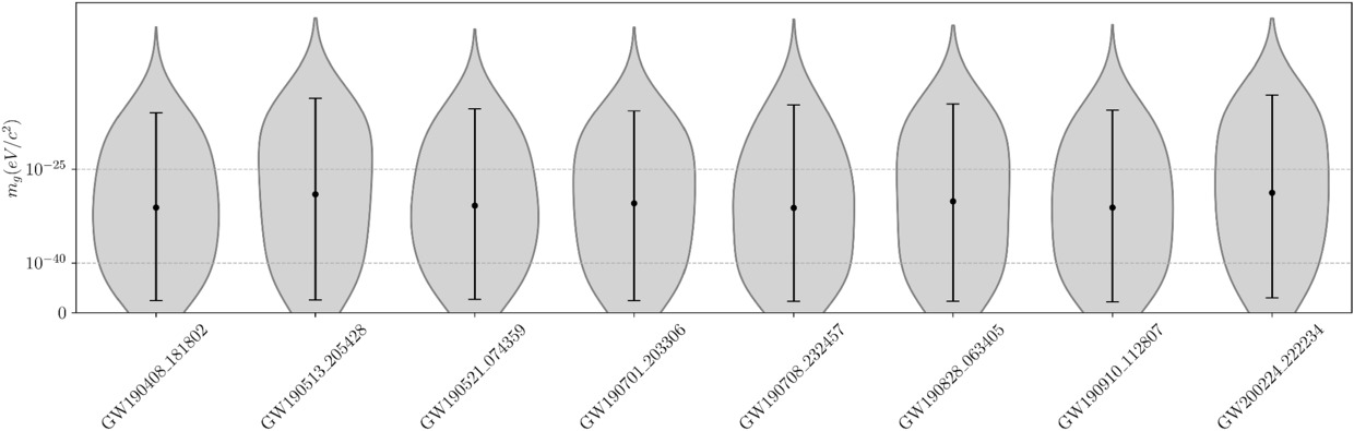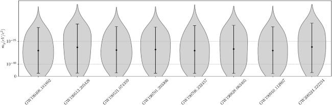 Figure 1. The posterior distribution of mg for selected GW events of BBH in GWTC-2.1 and GWTC-3 (90% credible interval). |