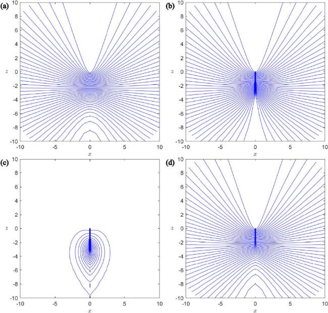 From figure 5, it is obvious that besides magnetic charge density, the half-dyon carries electric charge density that is concentrated along the negative z-axis near the origin, together with ‘electric’ neutral charge density. The magnetic field lines and ‘magnetic’ neutral field lines of the half-dyon are shown in figure 6. While the magnetic field lines represent that of an object with finite magnetic charge qm along the negative z-axis extending from the origin, the plot of ‘magnetic’ neutral field lines suggests that there are finite zm concentration in the lower space. The upper part possesses positive zm whereas the lower part possesses negative zm adjacently, giving an overall net zero ‘magnetic’ neutral charge for the system.