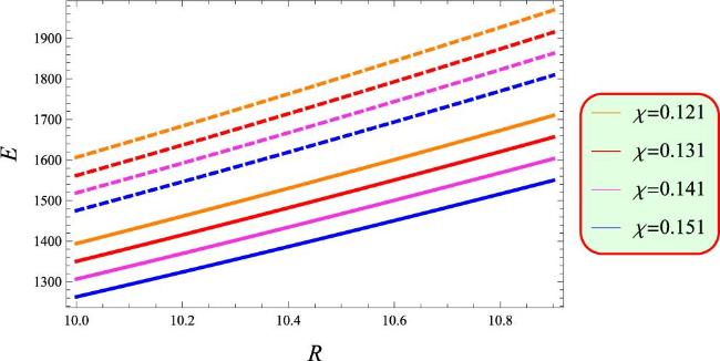 Since the above integration is not easy to solve analytically, we use numerical methods to examine the impact of the electromagnetic field on the energy within the shell. Figure 4 illustrates that the energy increases by increasing the shell’s radius. It is also found that the energy is directly proportional to both Rastall parameter and charge as their increasing values result in the gravastar model possessing higher energy. This boost in energy enhances the shell’s repulsive forces, improving stability against gravitational collapse.
