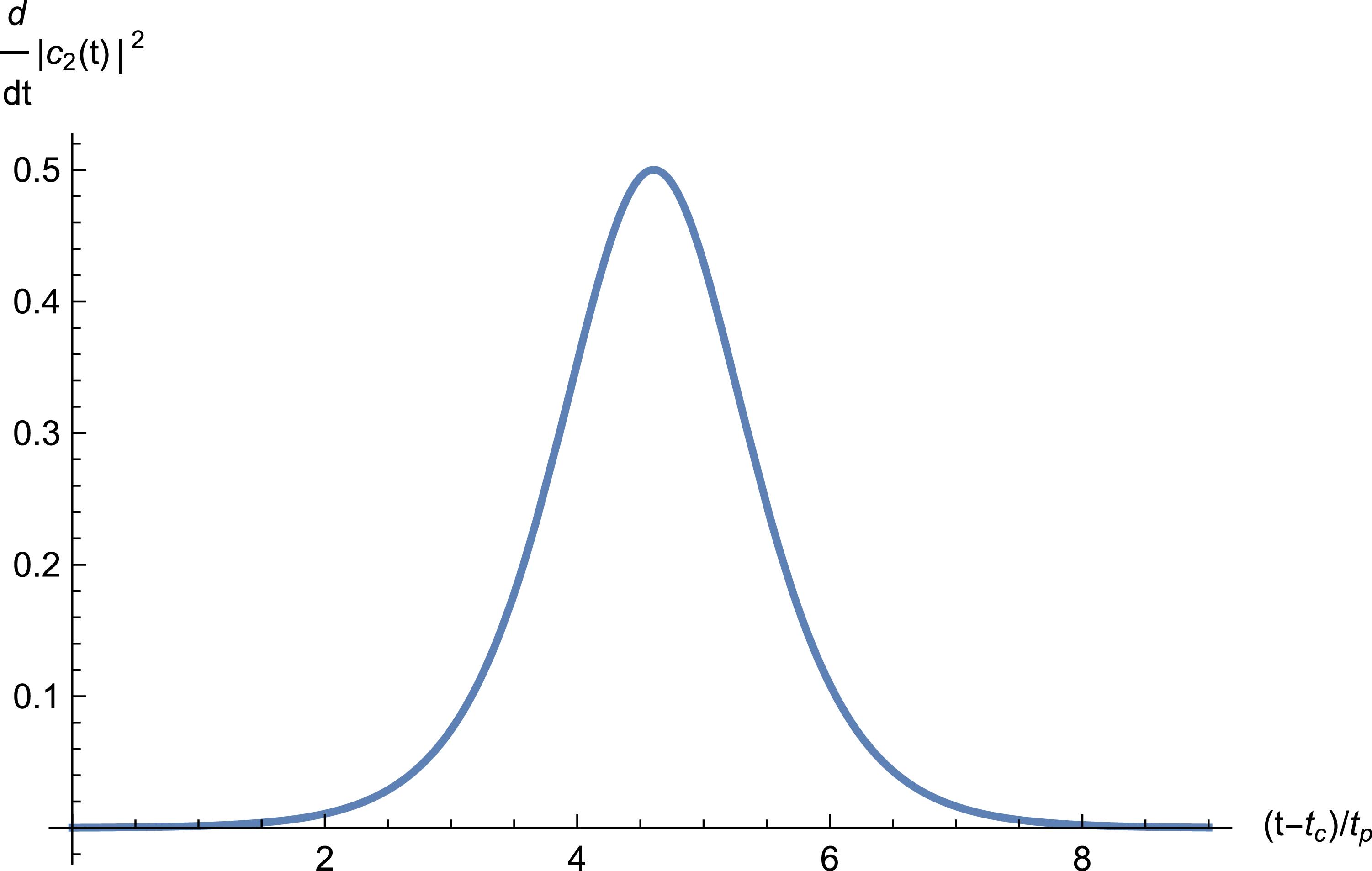 Figure 1. The evolution of the transition rate, which is proportional to the power of GW radiation. Here we adopt δ = 0.01 for illustration. This figure implies the timescale of GW radiation is comparable to tp.